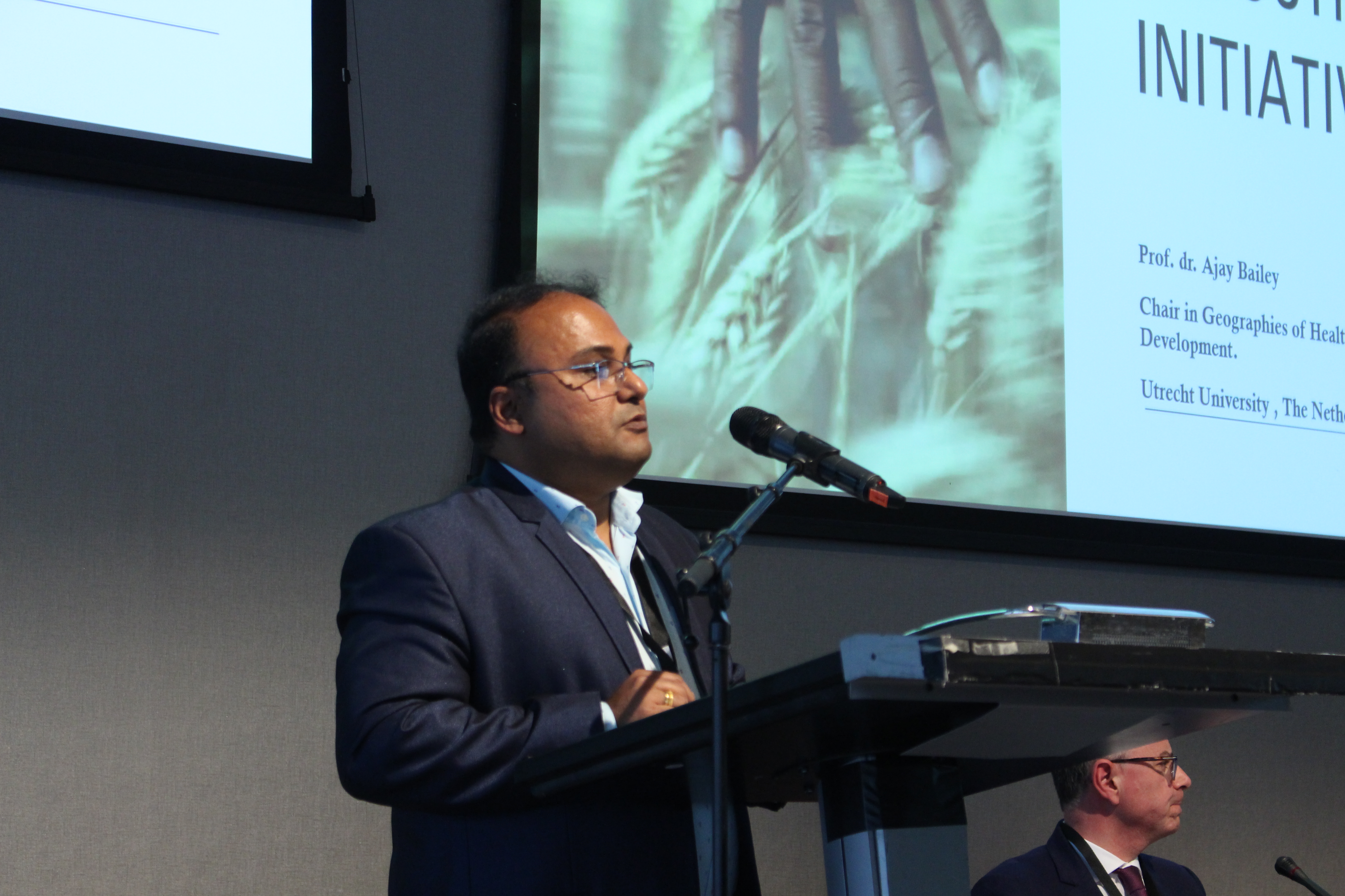Introduced by H.E. Mr. Kumar Tuhin, Ambassador of India to the Netherlands, academic perspective provided by Prof. Ajay Bailey, Chair in Geographies of Health, Inclusion, and Development at Utrecht University, who underscored the importance of human-centred and inclusive approaches to resilience, equity, and long-term development outcomes.